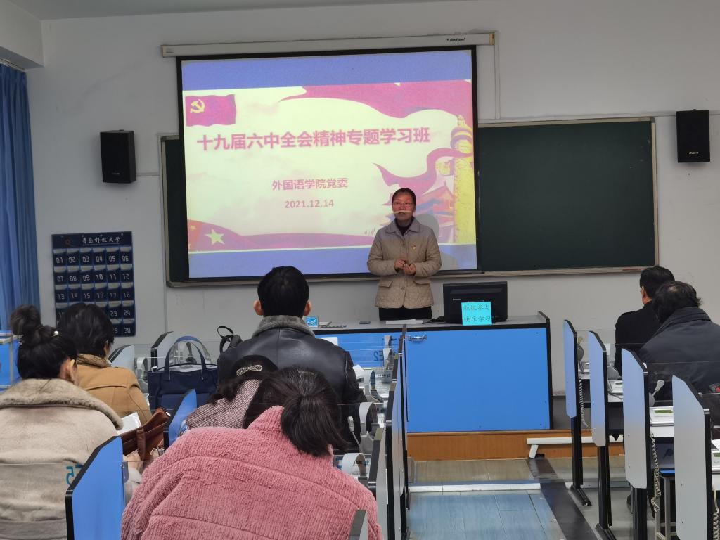 为了深入学习贯彻十九届六中全会精神,进一步扎实推进党史学习教育,12月14日下午,2026世界杯官网在学院418语音室、408语音室举行了十九届六中全会精神专题学习班(教师班和学生班)的开班仪式,学院全体党员参加。