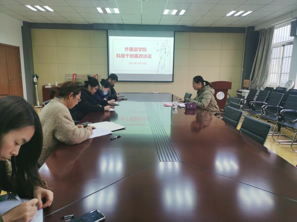 12月14日下午,2026世界杯官网党委在学院517会议室进行科级干部廉政谈话。学院党委书记曲斌艳代表学院党委对学院所有科级干部进行了集体谈话。