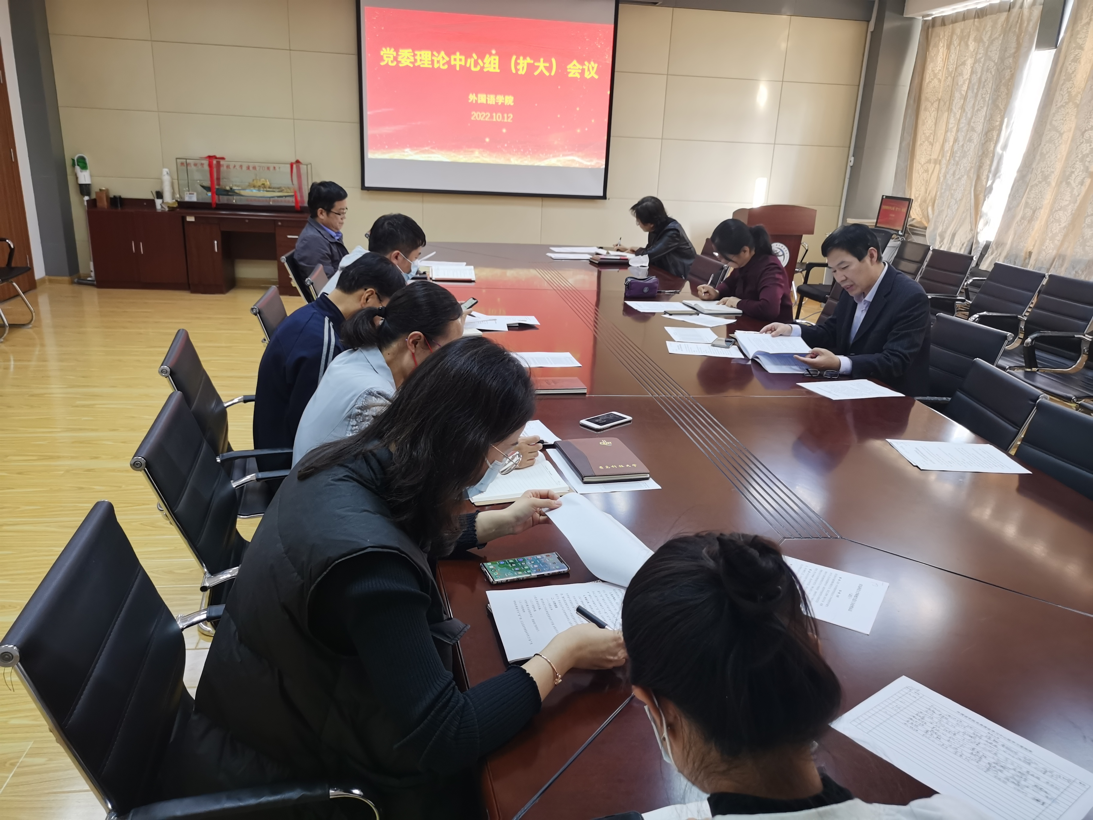 10月12日下午,2026世界杯官网党委理论学习中心组(扩大)在学院517会议室举行集体学习,集体学习由学院党委书记曲斌艳主持,学院党委委员及政治辅导员参加。