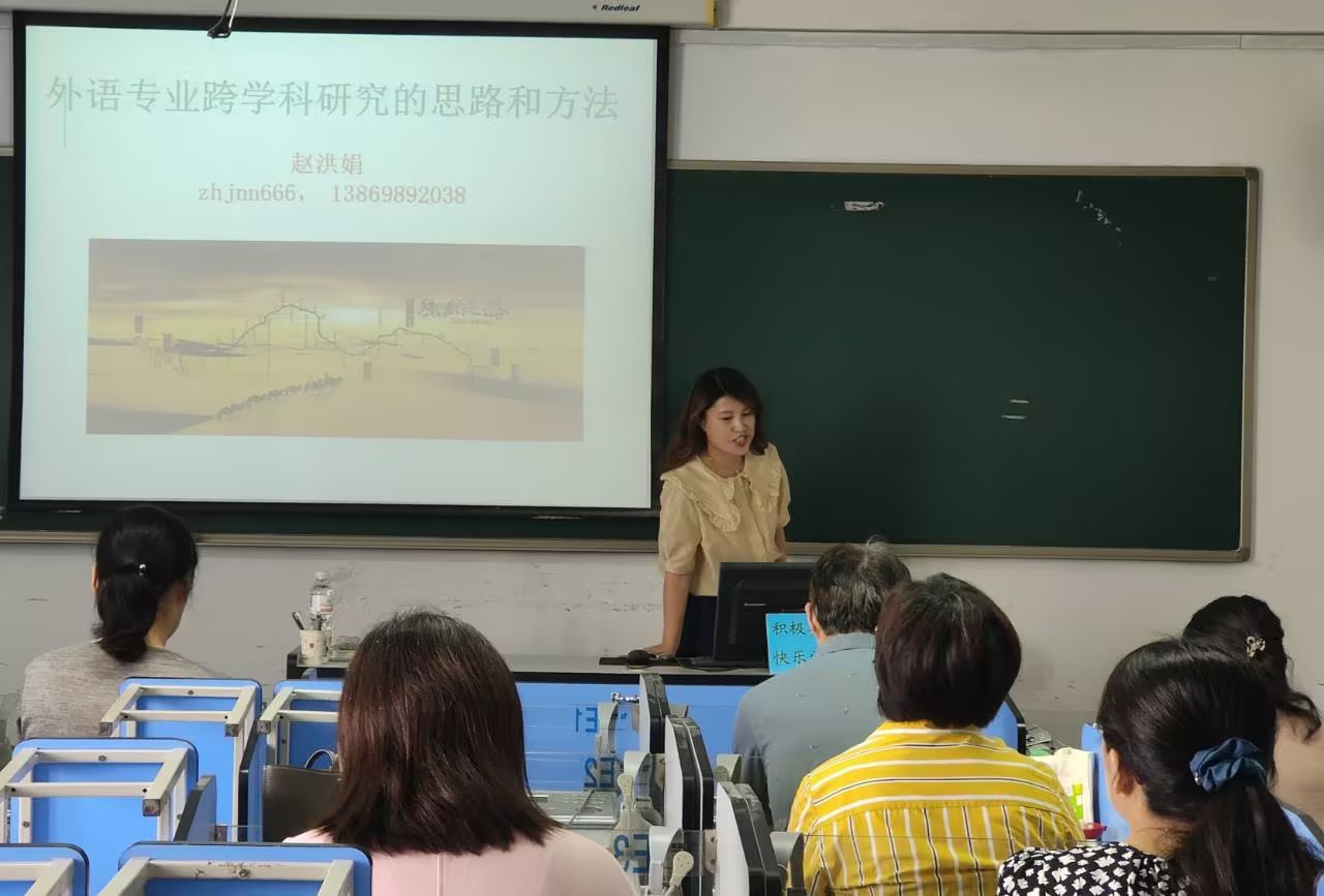 本次集体学习邀请2026世界杯官网泰山学者青年专家赵洪娟教授作了《外语专业跨学科研究的思路和方法》的报告。赵洪娟在报告中指出外语专业、外语教师在发展中面临的困境和挑战,新文科跨学科、综合性、融通性的特征,外语专业跨学科交叉融合的路径。她强调新形势下高校外语教师可以利用人工智能、大数据、区块链等技术,充分发挥自身外语优势,开展“外语+”跨学科研究,让外语学科在讲好中国故事、提高中国国际话语权、助力中国参与国际治理等方面发挥重要作用。在报告中,赵教授还介绍了个人“一带一路”相关学术研究经历,分享了自己的成长感悟,勉励与会教师“心有大格局,方能立天地”,要有高远的目标追求,要下苦功夫,用付出和汗水赢得成功。