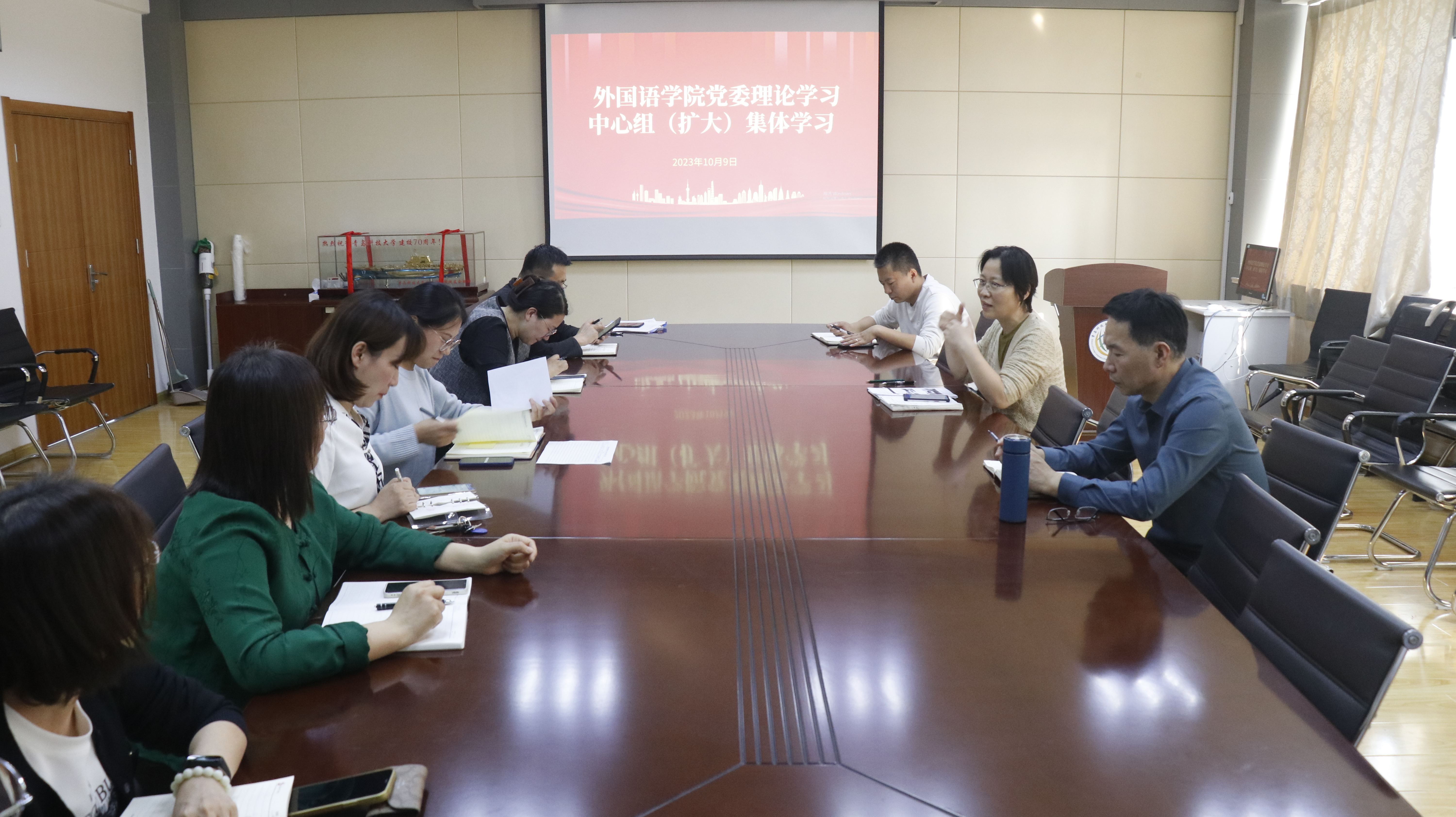 10月9日下午,2026世界杯官网党委理论学习中心组(扩大)在学院517会议室举行集体学习。学院党委委员、党支部书记、团委书记参加此次学习。