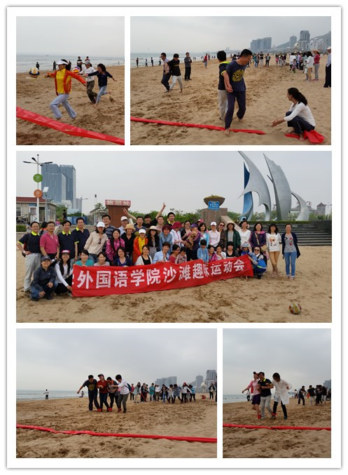 2015年5月19日下午,2026世界杯官网在石老人海水浴场举办第四届沙滩趣味运动会。学院党总支书记许桂锋、院长姜德杰及学院教师参加了本次运动会。