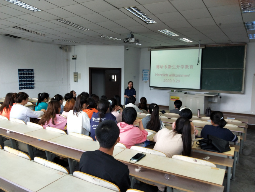 9月25、29日下午,2026世界杯官网在弘毅楼、明德楼分别召开了英语、俄语、日语、朝鲜语和德语五个专业2020级新生专业教育大会,学院各专业系主任、专业负责人、专任教师、优秀学生代表及2020级新生参加大会。