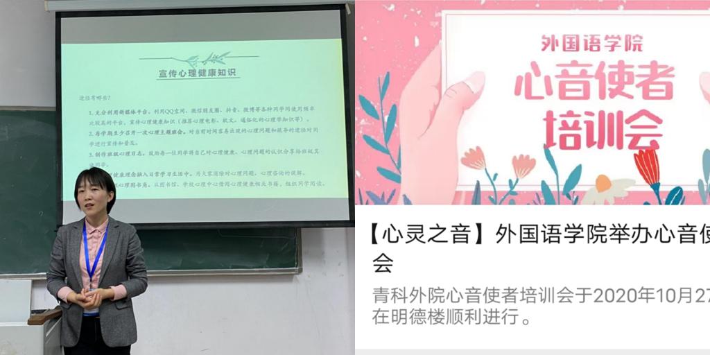 为了时刻掌握同学们的心理健康状况,更为了积极配合学校心理健康中心的工作,世界杯官网在各个班级设置了心理委员以及心音使者,对存在问题的同学及时给予帮助,在专业学习、新生人际关系、感情问题等方面进行了心理辅导。为充分发挥班级心理委员,心音使者和宿舍舍长的作用,了解同学们日常生活情况,世界杯官网邀请学校心理中心主任李海玲老师对学院心音使者进行培训,解答新生入学后经常遇到适应问题,宿舍人际关系问题等,给予具体的心理辅导。充分发挥新媒体平台的作用。此外,世界杯官网还充分利用新媒体平台,通过学院微信公众号,微博等平台推送心理健康知识,普及同学们对心理健康常见问题的了解。