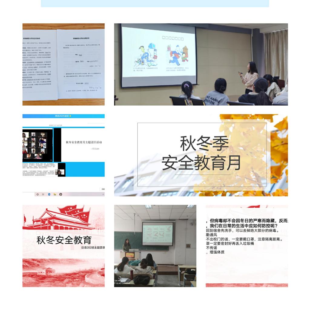为切实做好秋冬季安全教育工作,11月6日,召开秋冬季安全教育月主题教育,针对秋冬季疫情防控、传染病防治、宿舍用电安全等方面进行宣传教育,全方位为学生解读《2026世界杯官网安全告知书》,引导学生增强安全责任意识,增强自我防护能力。学院各团支部积极响应号召,召开线上线下主题团日,向学生宣传普及疫情防控知识,引导学生将疫情防控安全责任内化于心,外化于行,激发学生责任担当。