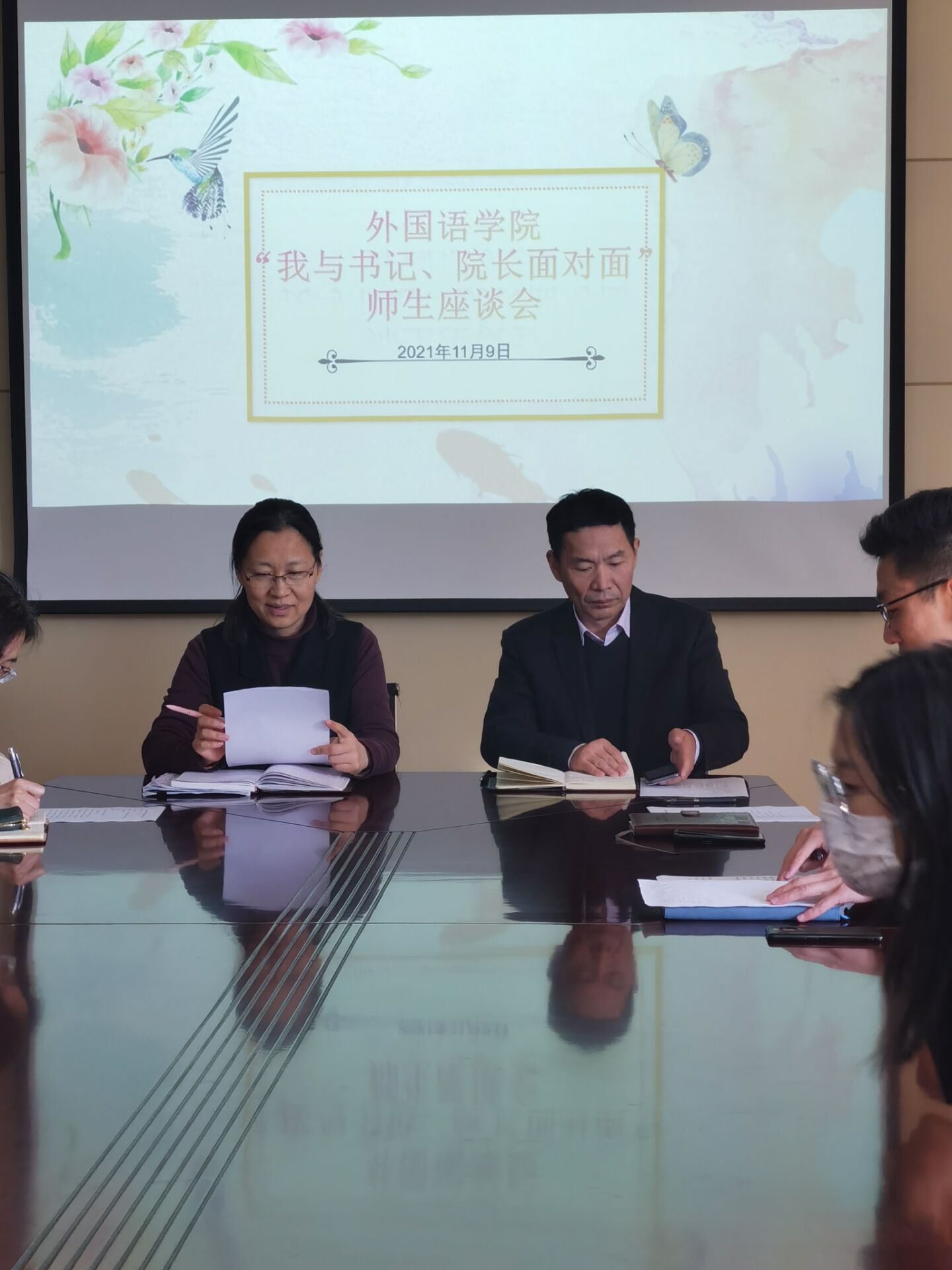 党委书记曲斌艳首先致辞,她代表学院对21级全体新生表示欢迎,勉励新生发扬主人翁精神,同时鼓励大家畅所欲言,充分交流学习、生活、成长中的烦恼、困惑和问题。