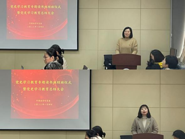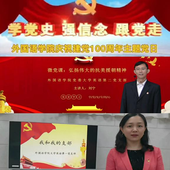 英语专业党支部王丽老师就课程思政示范课程建设进行了交流,多语种党支部书记巫莉丽就学习焦裕禄精神的学习心得进行了分享,大学英语第一教研室党支部王元英老师进行了庆祝建党100周年主题征文的交流。