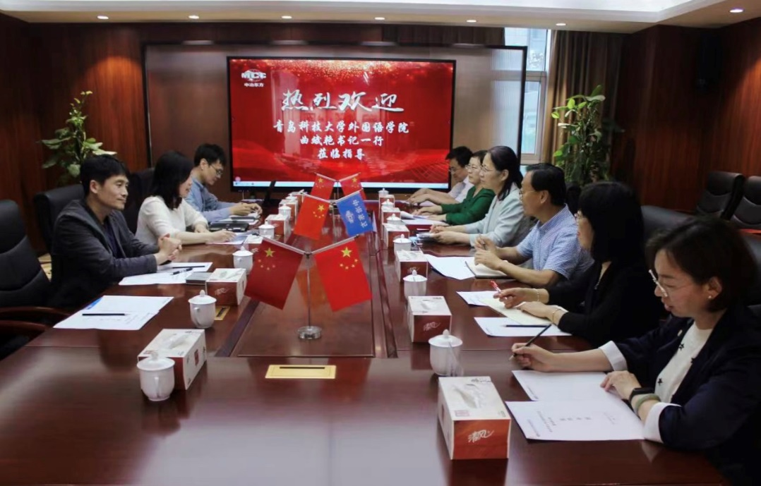 5月26日下午,2026世界杯官网党委书记曲斌艳带队,副院长康宁,英语系、俄语系和大学外语教学部主任一行6人,赴中冶东方翻译中心开展调研交流。交流会在中冶东方大厦会议室举行,中冶东方翻译中心主任赵忠会主持此次活动,翻译中心生产运营总监白玉东、科技主管魏国行参加了交流。