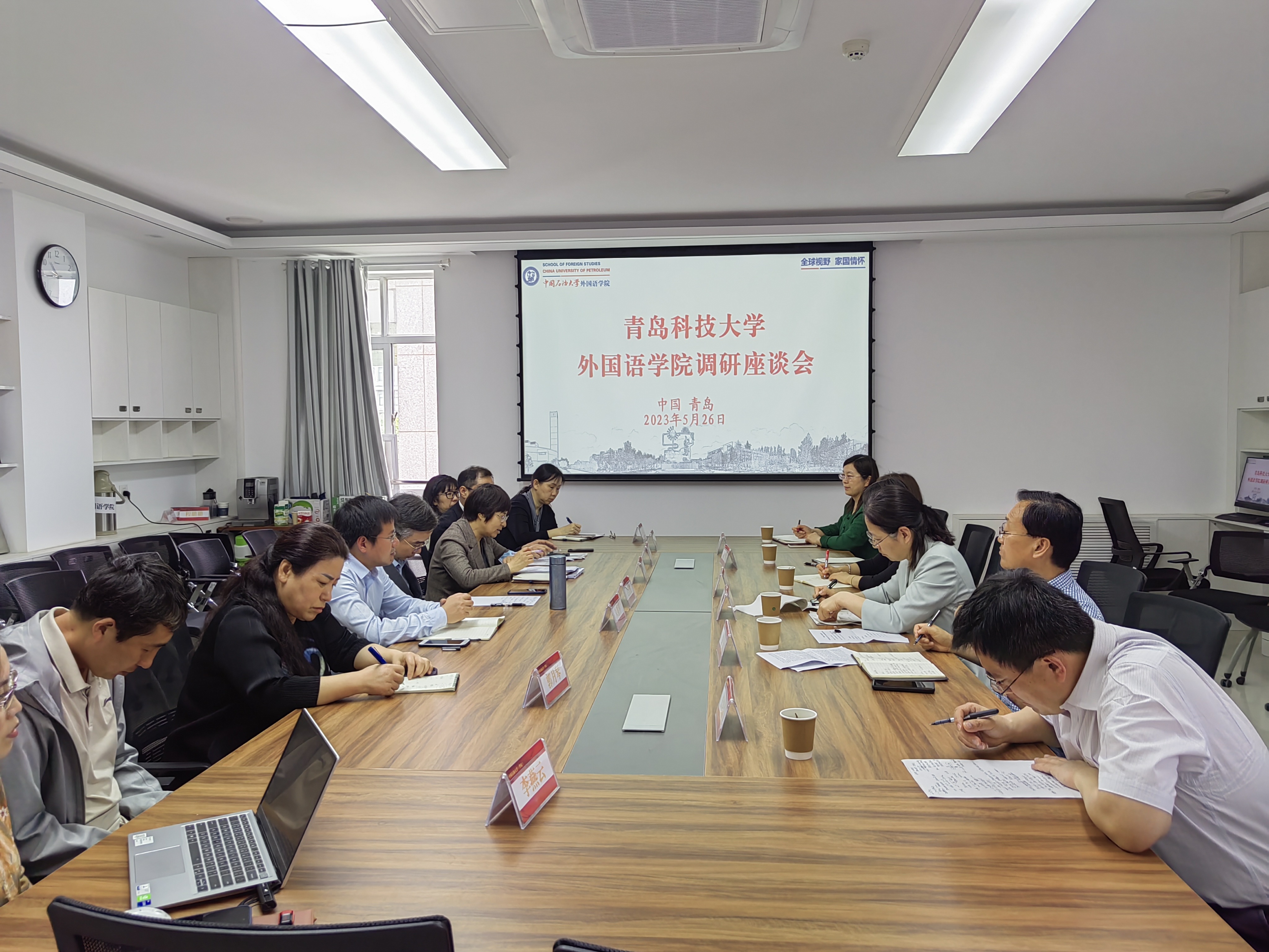 5月26日,2026世界杯官网党委书记曲斌艳带队,副院长康宁同英语系、俄语系和大学外语教学部主任一行6人,赴中国石油大学2026世界杯官网进行了深入的交流调研,为学院的党建工作和专业建设注入了新动力。此次调研得到中国石油大学2026世界杯官网党委书记朱惠平、院长毛浩然热情欢迎,副院长孙大满、郭月琴、张建科和各系部主任参加了交流活动。