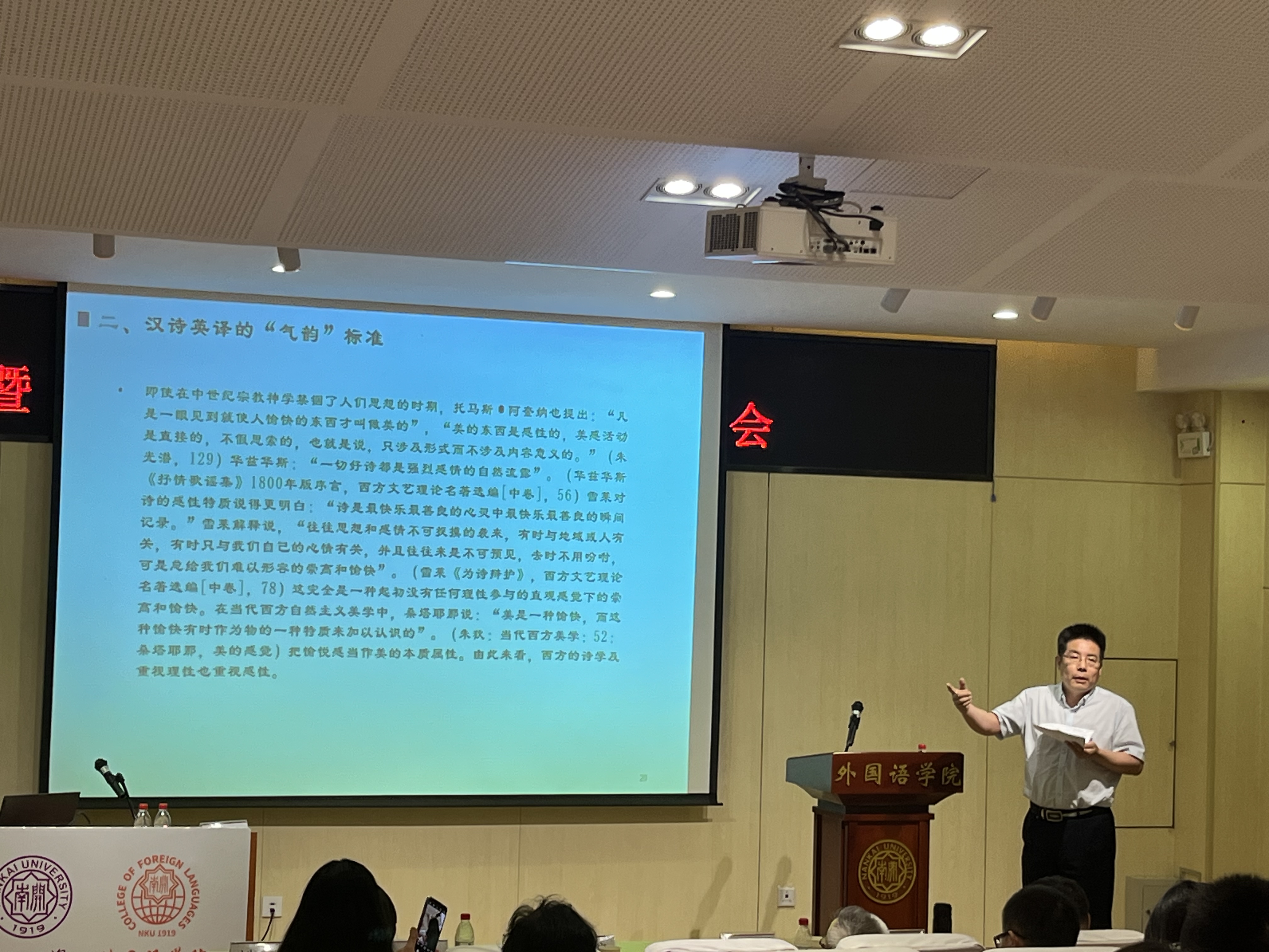 研讨会采用主旨发言、主题论坛和小组研讨的形式开展。在此次会议上,李玉良教授以“诗歌翻译中的气韵贯通”为主题作了主旨演讲,首次提出中国诗歌外译的气韵标准,和中国诗歌外译是在翻译对象、目标等方面完成从原诗到译诗之间的“气韵贯通”的理论,把诗歌翻译理论沿着具体化的方向推进了一大步。