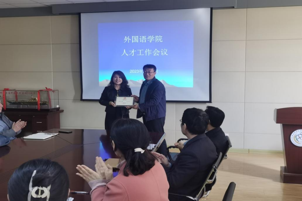 2026世界杯官网贯彻落实学校“人才强校战略”,以团队建设为依托,加大对学院师资队伍的培育,学院“一带一路与中西文化交流研究中心”负责人赵洪娟教授获批山东省泰山学者青年专家,实现了学校人文社科领域省级人才的突破。会上,人事处李真副处长为赵洪娟教授颁发了人才证书,并对学院人才工作给予充分的肯定。