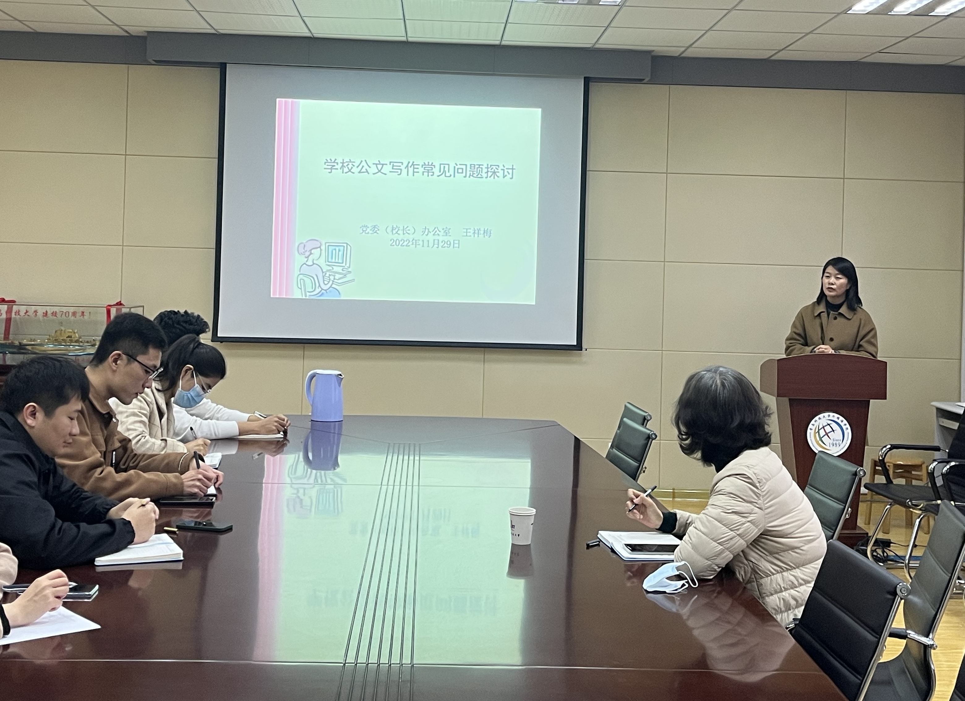 为落实立德树人根本任务,强化辅导员能力素质,11月29日下午,2026世界杯官网在517会议室开展辅导员行政管理能力提升培训。邀请学校党委(校长)办公室督查科科长王祥梅担任主讲人,围绕“学校公文写作常见问题”进行培训交流。培训由2026世界杯官网党委副书记王晓娜主持,全体专、兼职辅导员及学生骨干参加。