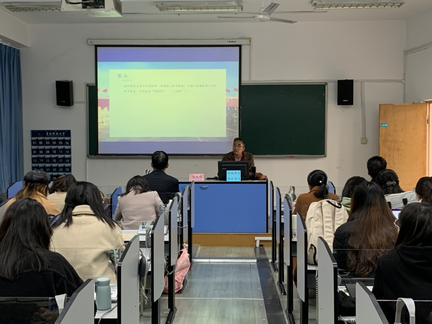 任东升教授以中国近代史重要历史事件的翻译为例,指出高层次外语人才培养过程中直接接触国外文化和西方价值观,尤其在翻译人才培养过程中,将“国家意识”贯穿于翻译实践训练和译者综合素质的各个环节尤为重要。之后,他从“政治语言与翻译”和“国家翻译实践”两个角度,引用沙博理和自己的翻译实践中鲜活生动的案例,阐述译者如何在翻译实践中坚持“国家意识”,提出译者应当具备高度的政治责任感和国家归属感,“萃译”和“内涵式翻译”有助于国家叙事的对外传播,符合国家翻译的内在要求。在此基础上,任东升教授总结翻译实践中的“国家意识”体现在三个方面:作为翻译实践的学习者对关涉“国家叙事”语言点的敏锐感知和转换策略;作为国家公民的译者对本国政治利益的认同;作为从业者在翻译生产劳动中对国家的忠诚。最后,任东升教授与现场师生进行了积极互动,解答了大家在国家叙事、国家翻译实践等方面的困惑,使在座师生获益匪浅。
