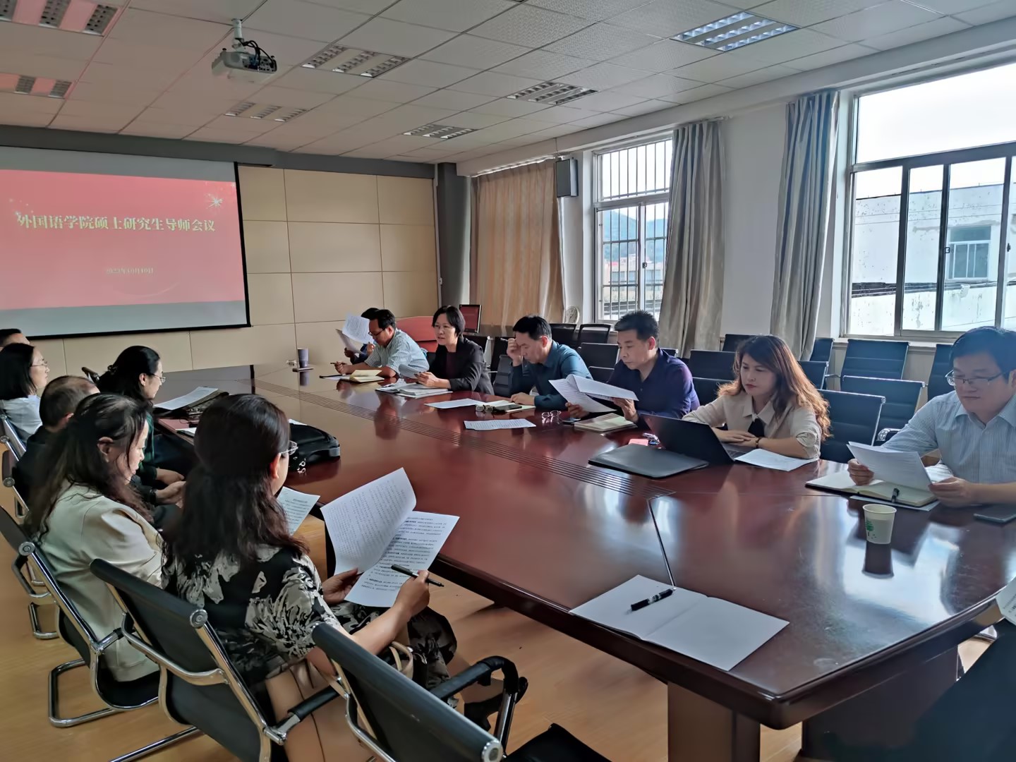 10月10日下午,2026世界杯官网在517会议室召开研究生指导教师培训会。院长尹洪山、学院党委书记曲斌艳及全体研究生导师参加了此次会议,会议由副院长吕耀中主持。