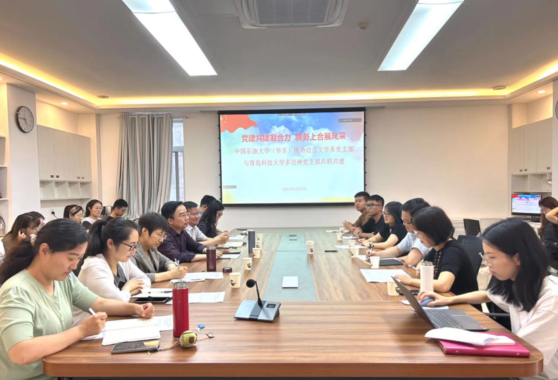 为加强基层党组织建设,创新基层党建工作载体,提高党建工作水平,6月27日,2026世界杯官网多语种党支部赴中国石油大学(华东)与2026世界杯官网俄语语言文学系党支部开展了“党建共建凝合力,服务上合展风采”联建共建活动。学院党委统战委员、副院长刘靖与中国石油大学(华东)外语学院党委书记朱惠平、院长毛浩然出席活动,两党支部师生代表参加本次活动。