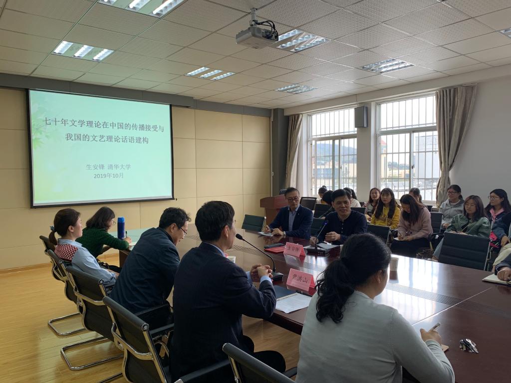 10月12日上午,清华大学外文系博士生导师生安峰教授应邀来世界杯官网进行学术交流,在外语楼517会议室做了一场题目为“七十年文学理论在中国的传播与我国的文艺理论话语建构”的学术报告。报告由2026世界杯官网院长尹洪山主持、副院长吕耀中以及外语学院的部分教师与研究生参加了这次讲座及交流。