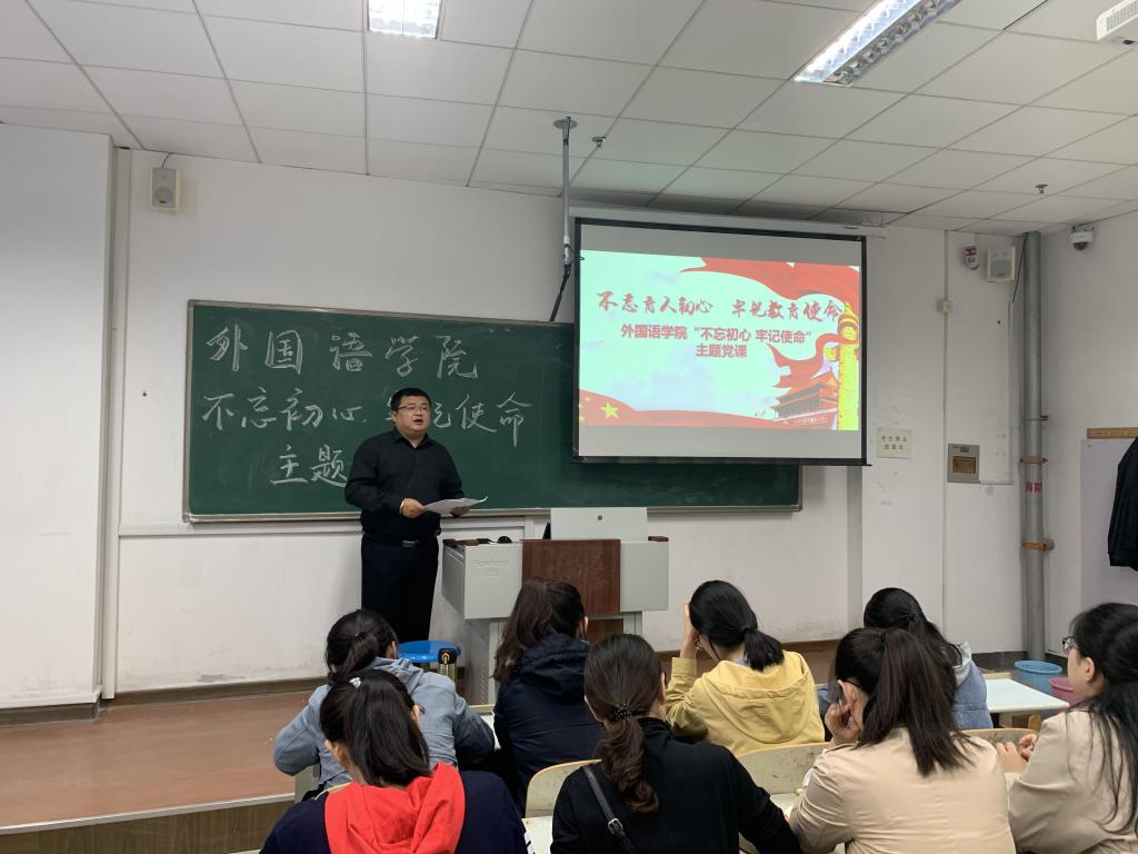 10月22日,2026世界杯官网于明德楼441教室召开“不忘初心、牢记使命”主题党课活动,2026世界杯官网党总支副书记宋飞给2026世界杯官网全体学生党员上了非常有意义的一堂党课。