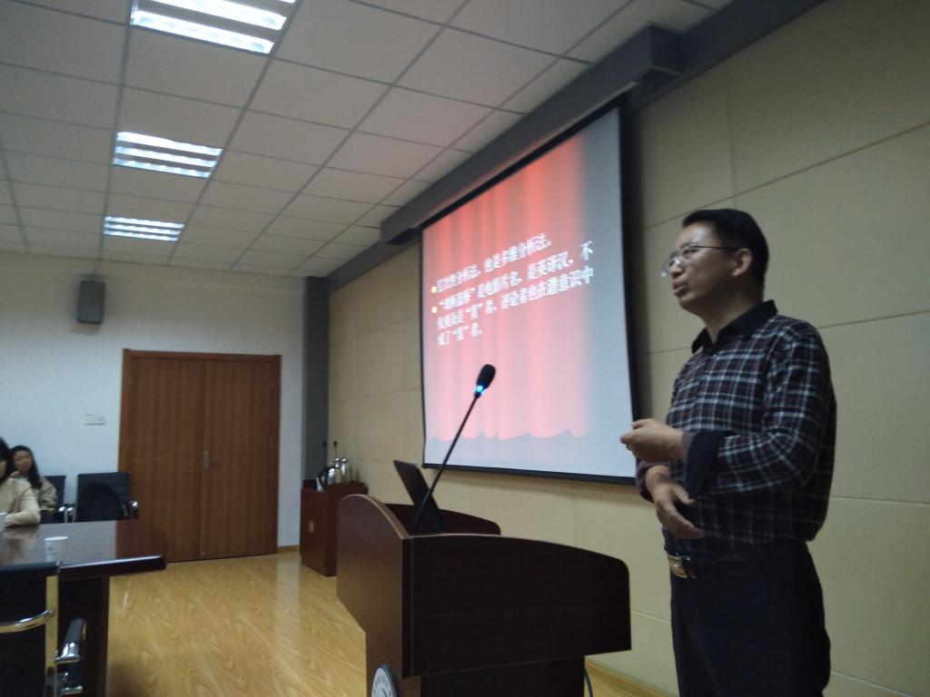 10月24日晚间,扬州大学周领顺教授做客2026世界杯官网研究生论坛,在外语楼517会议室做了题为《英译汉与汉译英的审美取向与翻译批评的公正性——以“魂断蓝桥”和I Did Not Kill My Husband的译名为例》的专题讲座。讲座由院长尹洪山主持,校翻译研究中心主任李玉良教授与部分教师和研究生参加。