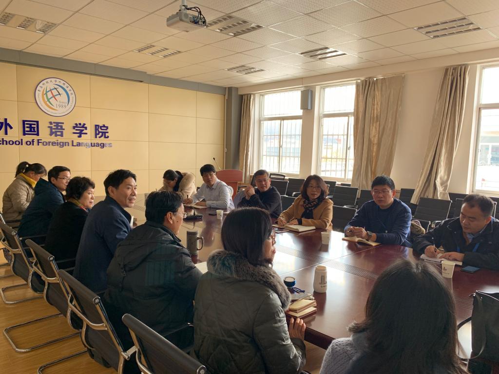 11月25日上午,学校教务处王霞处长带领教务处领导班子成员一行7人来世界杯官网调研和座谈。 座谈会由尹洪山院长主持,副院长任素贞、康宁,院长助理刘靖及部分教师代表参加了座谈。