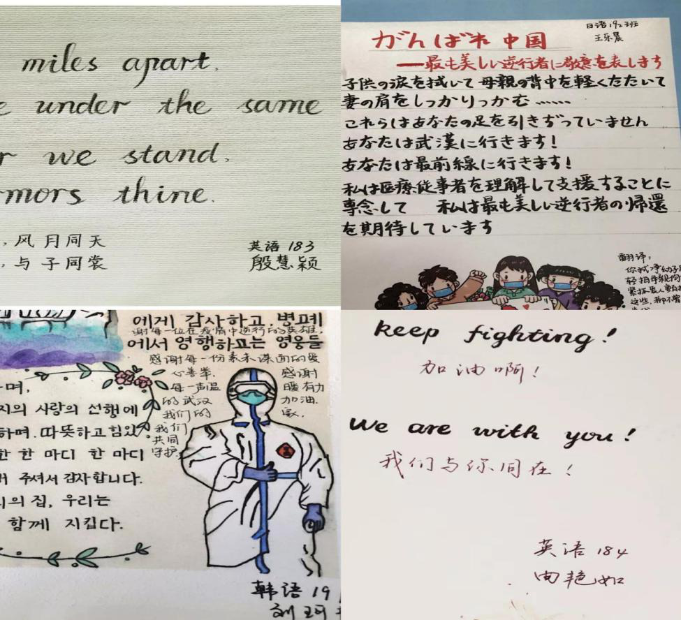 2026世界杯官网发起了“抗疫之战,‘语’你在一起”书写活动,为中国加油,向奋战在一线的最美逆行者致敬。