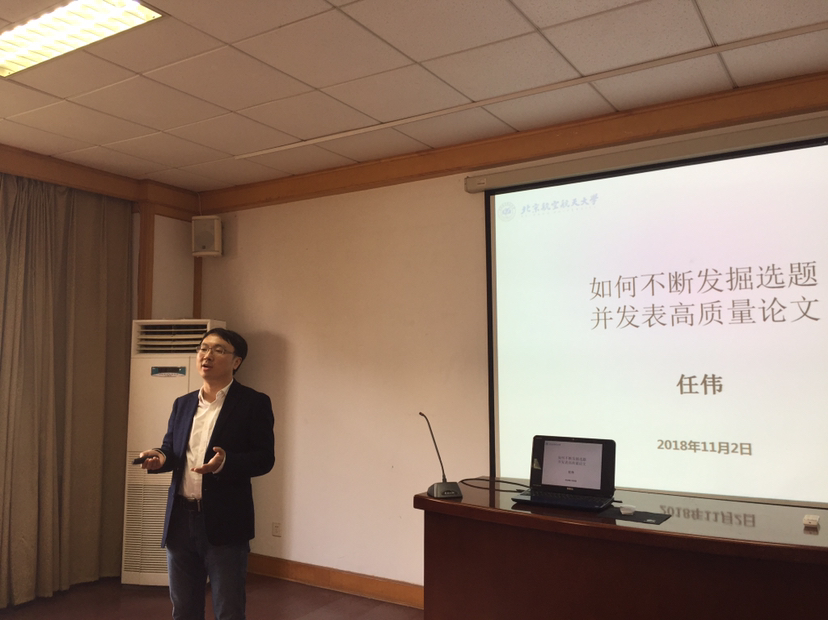 11月2日下午,北京航空航天大学博士生导师任伟教授应邀来世界杯官网进行学术交流,并带来题为“如何从日常生活教学中发掘论文选题并发表”的学术报告。报告由副院长吕耀中主持,院长尹洪山、副院长康宁及部分教师和研究生参加。