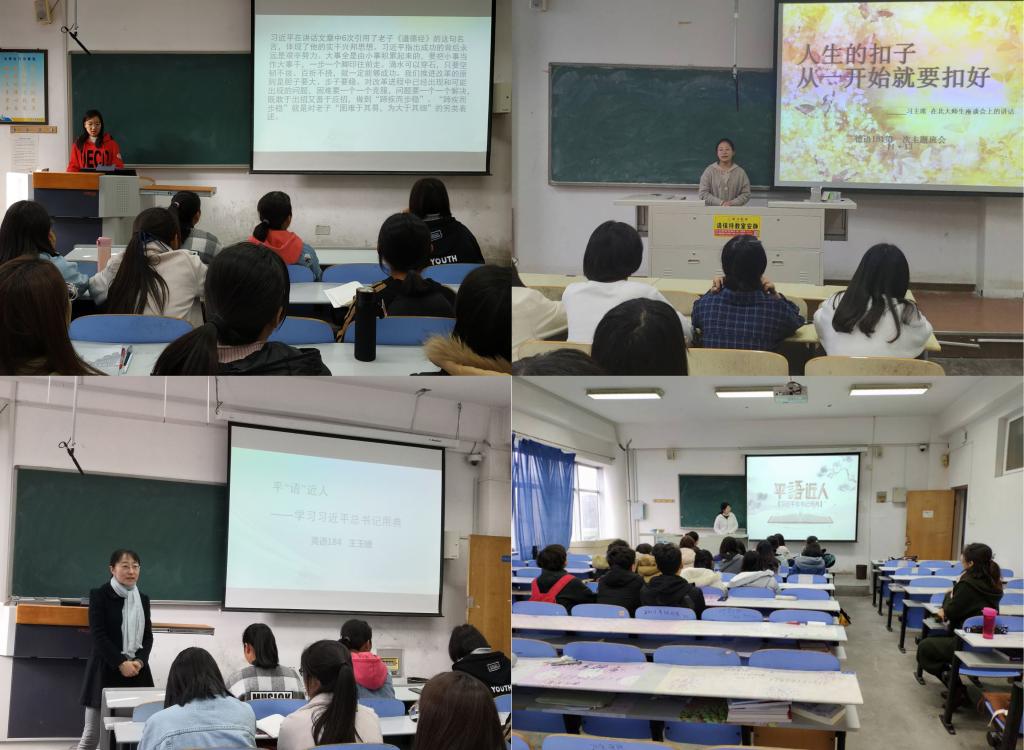 活动从11月中旬开始,每周选取一条习近平总书记一系列重要讲话、文章、谈话中所引用的经典名句,深入学习典故的丰富内涵,并对所选取的典故用所学语言进行翻译。活动期间,德语181深入学习并在专业老师指导下翻译了习近平总书记在北大师生座谈会时强调的“人生的扣子从一开始就要扣好”这句话,引导同学们树立正确的世界观、人生观、价值观。英语172班学习并尝试翻译了出自《荀子·劝学》中的名言警句“锲而舍之,朽木不折;锲而不舍,金石可镂”,希望同学们在面对困难时能够坚持不懈,不要轻言放弃。俄语181学习并在专业课老师的指导下翻译了习近平总书记引用的“国无德不兴,人无德不立”这句话,引导同学们自觉践行社会主义核心价值观。