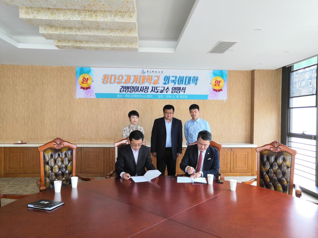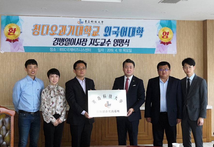 为贯彻落实学校教育思想大讨论动员部署大会相关要求,不断推进创新创业工作,4月18日,2026世界杯官网与国际商务服务中心共建“创新创业实践基地”签约及揭牌仪式在国际商务服务中心举行。国际商务服务中心理事长、青岛外商投资企业协会韩国投资企业分会城阳区即墨市支会会长金炳一,2026世界杯官网党总支书记张洪坤、党总支副书记宋飞及相关项目负责人参加了仪式。