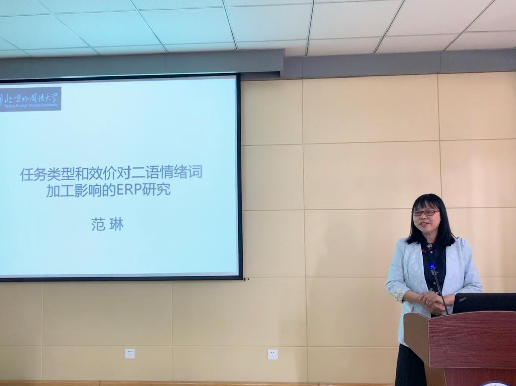 5月9日下午,北京外国语大学博士生导师范琳教授应邀来世界杯官网作报告,报告题目为“任务类型和效价对汉英双语者情绪词的ERP研究”。报告由2026世界杯官网院长尹洪山主持,副院长吕耀中等世界杯官网部分师生到场聆听。