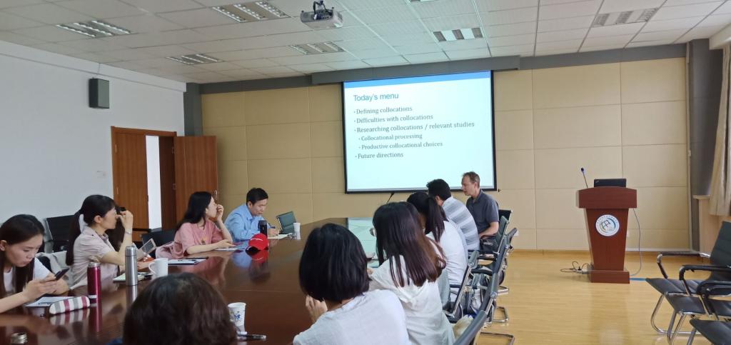 在专题讲座中,Wolter教授首先从不同的理论视角阐述了词汇搭配的定义,以及为什么搭配会对二语学习者造成较大的习得困难,然后通过启动词汇决定任务和词汇的可接受性判断任务的反应时测试来确定影响二语搭配加工的因素。随后,Wolter教授通过一致性、频率和组合性三个方面来研究了搭配问题。从一致性方面来看,母语对二语的搭配会产生极其重要且长久的影响;从频率方面来看,对于二语者来说,搭配与词级的关注度可能取决于熟悉度并且一致性和频率相互作用也会影响二语搭配处理问题。从组合性方面来看,母语与二语者都会受到其影响。随后,Wolter教授还从产出搭配的其他因素(包括搭配的共性和节点词的具体性和母语与二语重叠)角度对二语产出性搭配进行了讲解,从而更好地帮助人们研究词汇搭配的过程。最后,Wolter教授也对未来的研究趋势进行了展望,为该领域的研究提供了新思路和新视角。