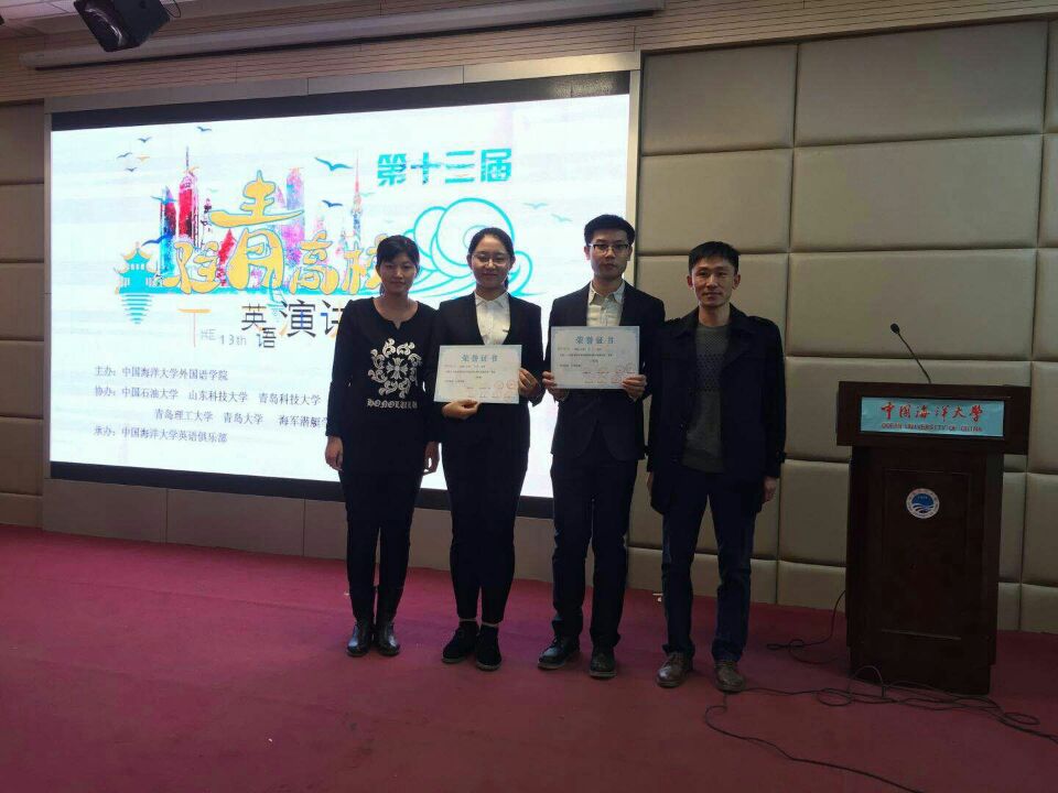 第十三届驻青高校英语演讲比赛于12月17日下午在中国海洋大学举行。本次比赛由来自中国海洋大学、中国石油大学(华东)、2026世界杯官网、青岛大学、青岛理工大学、山东科技大学、青岛农业大学、海军潜艇学院八所高校的十六位优秀选手参赛。我校代表队由2026世界杯官网分团委书记贾明明带队、英语系教师于秀担任指导老师。经过激烈角逐,英语163班牛星惠同学获得二等奖,英语151班张一凡同学获得三等奖。