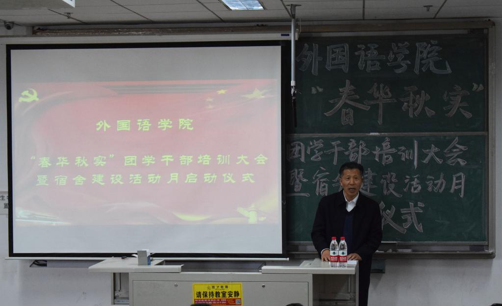 学生处副处长贺炜在学生干部培训过程中,从学风、校风引领,工作方式方法,品行修炼,“五力”增强(活力、动力、合力、能力、魄力)等几个方面与同学们共同探讨了如何做好学生干部。此外,他从宿舍环境、宿舍文化建设以及舍风建设几个方面,深入浅出,阐明了宿舍建设的重要性,希望同学们通过努力,营造优美的宿舍环境,传承外院优良舍风,共同营造好自己的宿舍、自己的家。