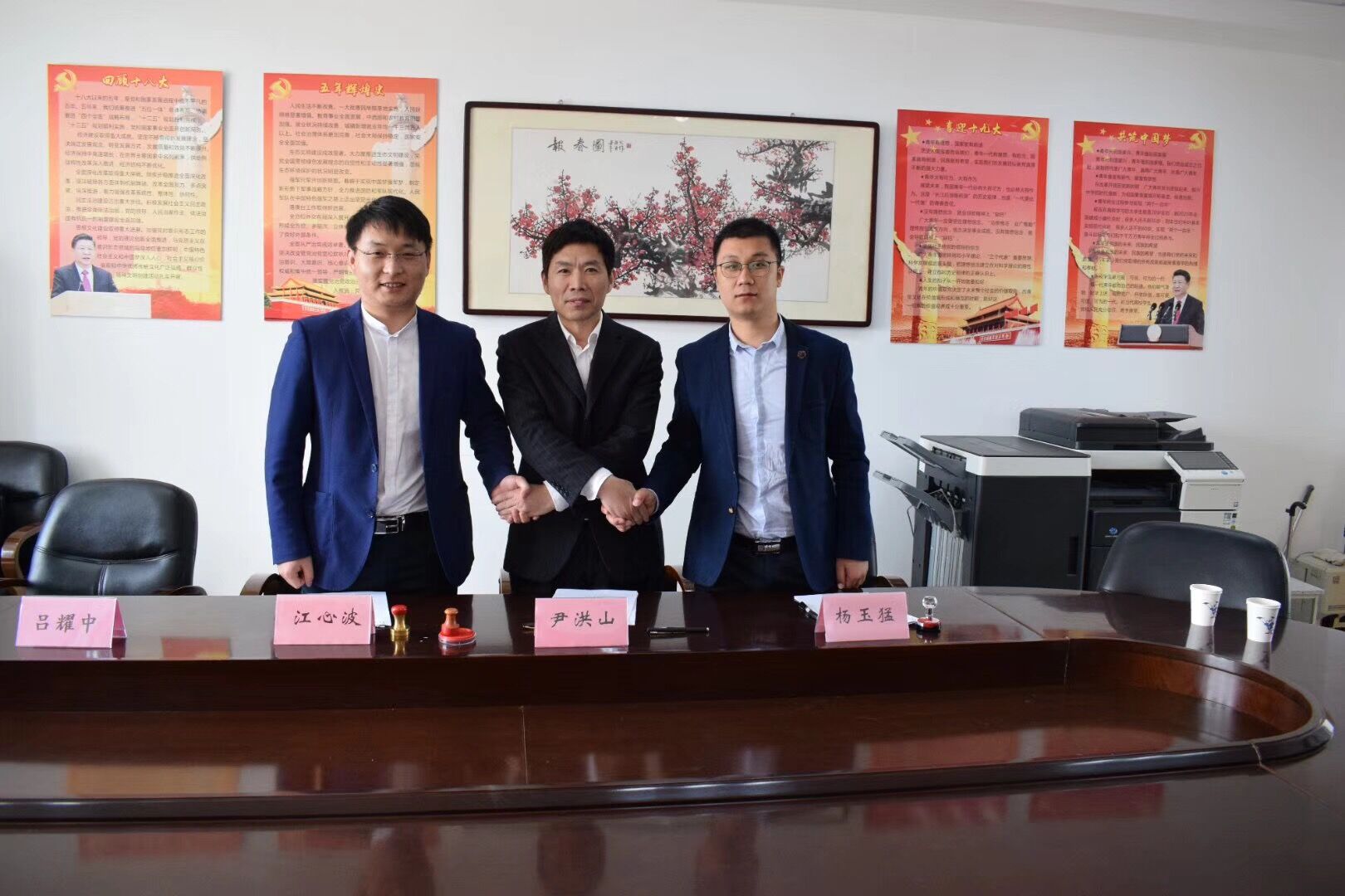 4月26日,2026世界杯官网与北京译点科技有限公司及山东译传世嘉翻译有限公司校企合作备忘录签署仪式在外院楼502会议室举行,2026世界杯官网院长尹洪山、副院长吕耀中、快译点Trans CEO江心波、译百BesTrans 副总经理杨玉猛参加了签约仪式。