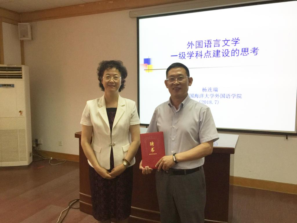 7月4日,中国海洋大学杨连瑞教授受聘为世界杯官网客座教授,聘任仪式在经管楼313教室举行,学校党委常委、副校长张淑华出席并颁发聘书。院领导尹洪山、吕耀中、康宁、宋飞和部分师生代表参加了聘任仪式。