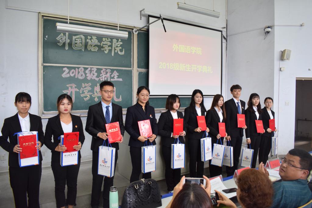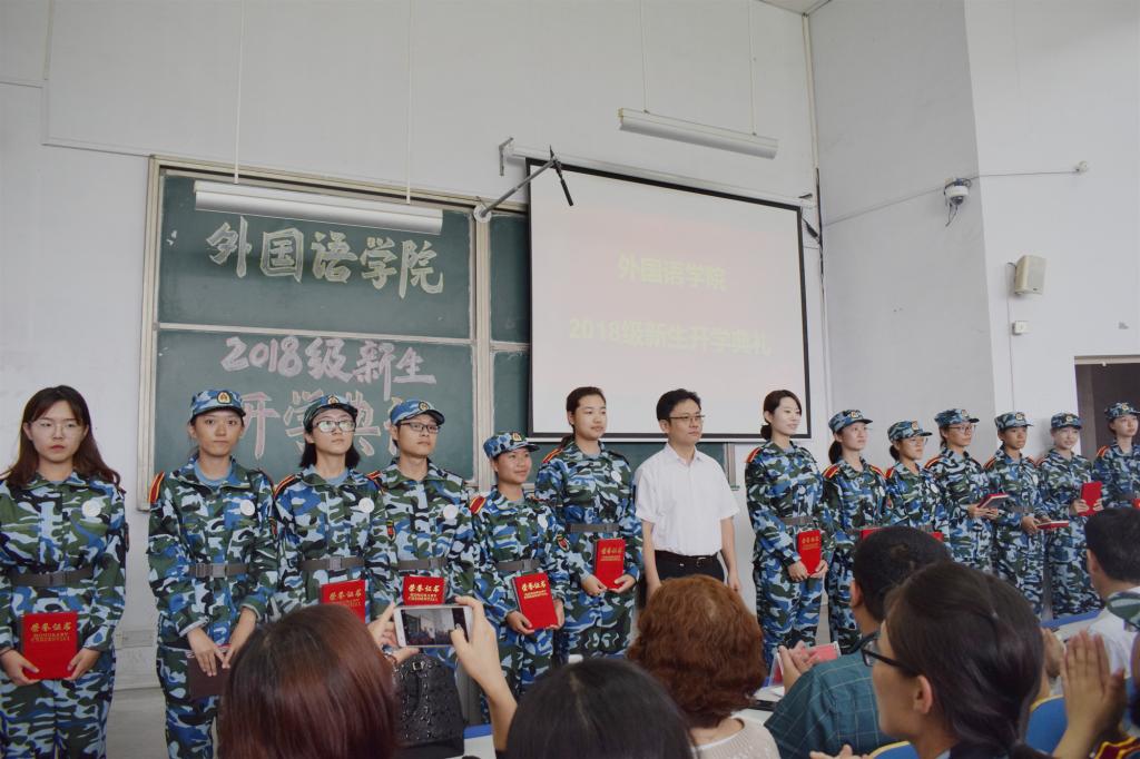 最后,院长尹洪山、党总支书记张洪坤分别为获得外院之星称号和在军训中表现突出的学生颁奖。老生代表刘晓雨、新生代表鲍国美分别在开学典礼上发言。