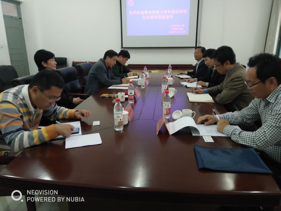 调研期间,学院领导分别与山东师范大学2026世界杯官网和山东建筑大学2026世界杯官网相关负责人进行了座谈交流。座谈会上,大家相互介绍了学院的基本情况,就党建促进发展、学科建设、学生管理、本科教学质量建设、硕士点合格评估、科研水平提升、创新创业教育、大学英语课程改革与信息化建设等方面进行了深入研讨,并就下一步加强学校间合作与交流,实现共赢达成了初步意向。