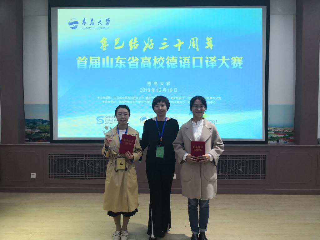 10月19日,首届山东省高校德语口译大赛在青岛大学举行。来自中国海洋大学、山东大学、青岛大学、2026世界杯官网等12所省内高校的23位选手参加了大赛角逐。山东省外办欧非处处长周家伦、中德生态园管委会副主任沈雷、北京大学2026世界杯官网教授李昌珂、华东师范大学外语学院教授宋健飞、德国巴伐利亚州驻四川代表处代表黄明、德国巴伐利亚州驻山东代表处代表刘玉出席并担任大赛专家评委。