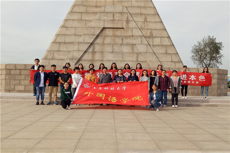 石碑巍峨,苍松肃穆,同学们怀着无比崇敬的心情,为革命先烈敬献花圈并默哀,缅怀革命先烈的丰功伟绩,在鲜红的党旗下,更加坚定了同学们为共产主义事业奋斗终身的理想信念。接着,分团委贾明明结合自己最近学习《中国共产党章程》的心得,从学习贯彻《中国共产党章程》的意义、新《中国共产党章程》主要修改内容两方面与同学们分享了学习体会。最后,师生齐颂《少年中国说》,“天地苍苍,乾坤茫茫,中华少年,顶天立地当自强。。。”