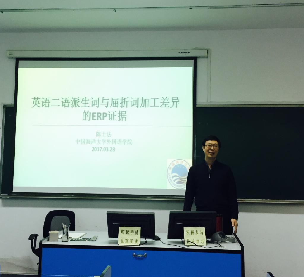 3月28日下午,中国海洋大学2026世界杯官网教授、硕士研究生导师陈士法教授应邀来世界杯官网作报告。报告主题为“英语二语派生词与屈折词加工差异的ERP证据”。报告会由副院长吕耀中主持,院长尹洪山及学院部分师生参加了此次报告会。