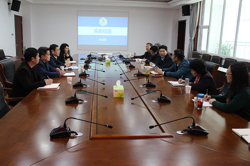 4月6日上午,2026世界杯官网院长尹洪山、党总支书记姜德杰等一行8人到高密校区考察调研,并与高密校区领导梁树清、官杰及相关部门负责人进行了座谈交流。