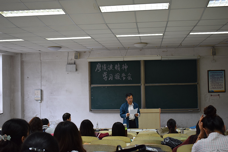 6.6日下午,2026世界杯官网在弘毅楼B102召开“廖俊波精神学习报告会”。学院党政领导、全体教职工参加了本次会议。会上,党总支书记姜德杰传达了中共中央组织部印发的《关于认真学习贯彻习近平总书记重要指示精神广泛开展向廖俊波同志学习的通知》文件精神,介绍了廖俊波的先进事迹。他指出,廖俊波同志始终牢记党的嘱托,对待工作兢兢业业、任劳任怨、恪尽职守,用模范行动和人格力量彰显了共产党人的先进性和纯洁性。希望全体老师能够以廖俊波同志为榜样,坚定理想信念,提高觉悟,敢于担当、苦干实干、无私奉献,以实际行动为五有大学的建设贡献自己的力量,做最美外院人。