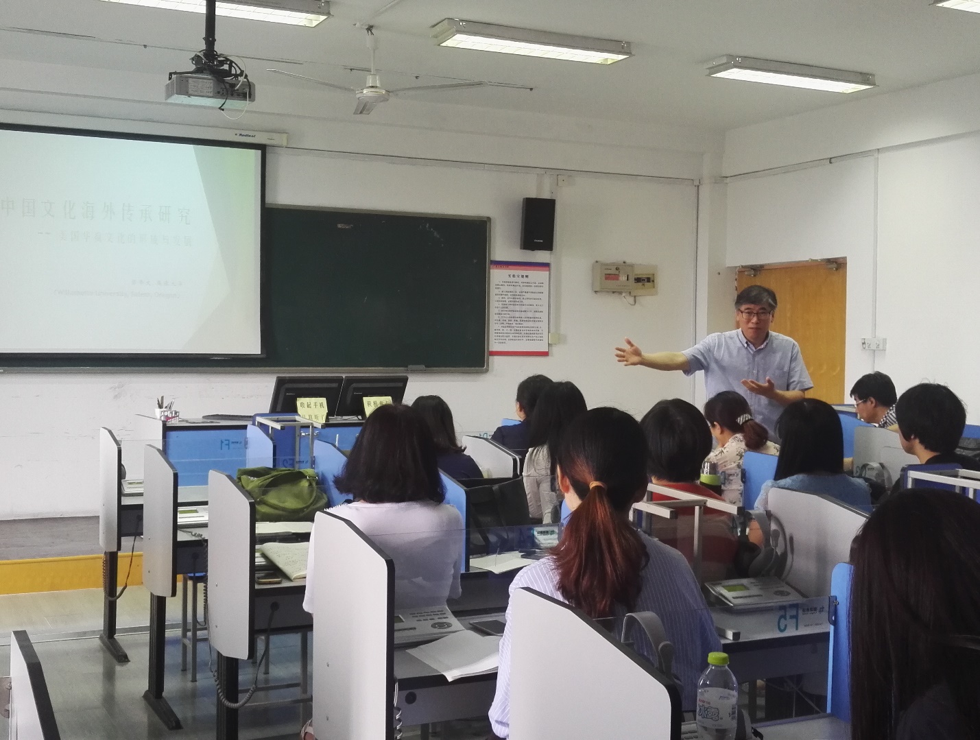 2017年6月22日上午,美国崴涞大学东亚系主任张举文教授在2026世界杯官网举办了一场关于“中国文化海外传承研究”的生动讲座。讲座由2026世界杯官网吕耀中副院长主持,外语学院、传播学院等院系的众多师生共同参与了本场讲座。