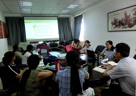 经过一个假期的精心准备,大学英语精品课的课程设计,课件制作已基本完成,顺利进入课程录制阶段。尹洪山院长对老师们的辛苦付出给予肯定和赞扬。院长助理大学英语教学部主任刘靖老师也给出了宝贵的建议。整个座谈会气氛轻松热烈,老师们畅所欲言,充分发挥各自的特长和智慧,集思广益,努力将大学英语精品课做的形式多样,内容新颖,能够吸引学生从在线课程中吸收到更多,更新的知识。