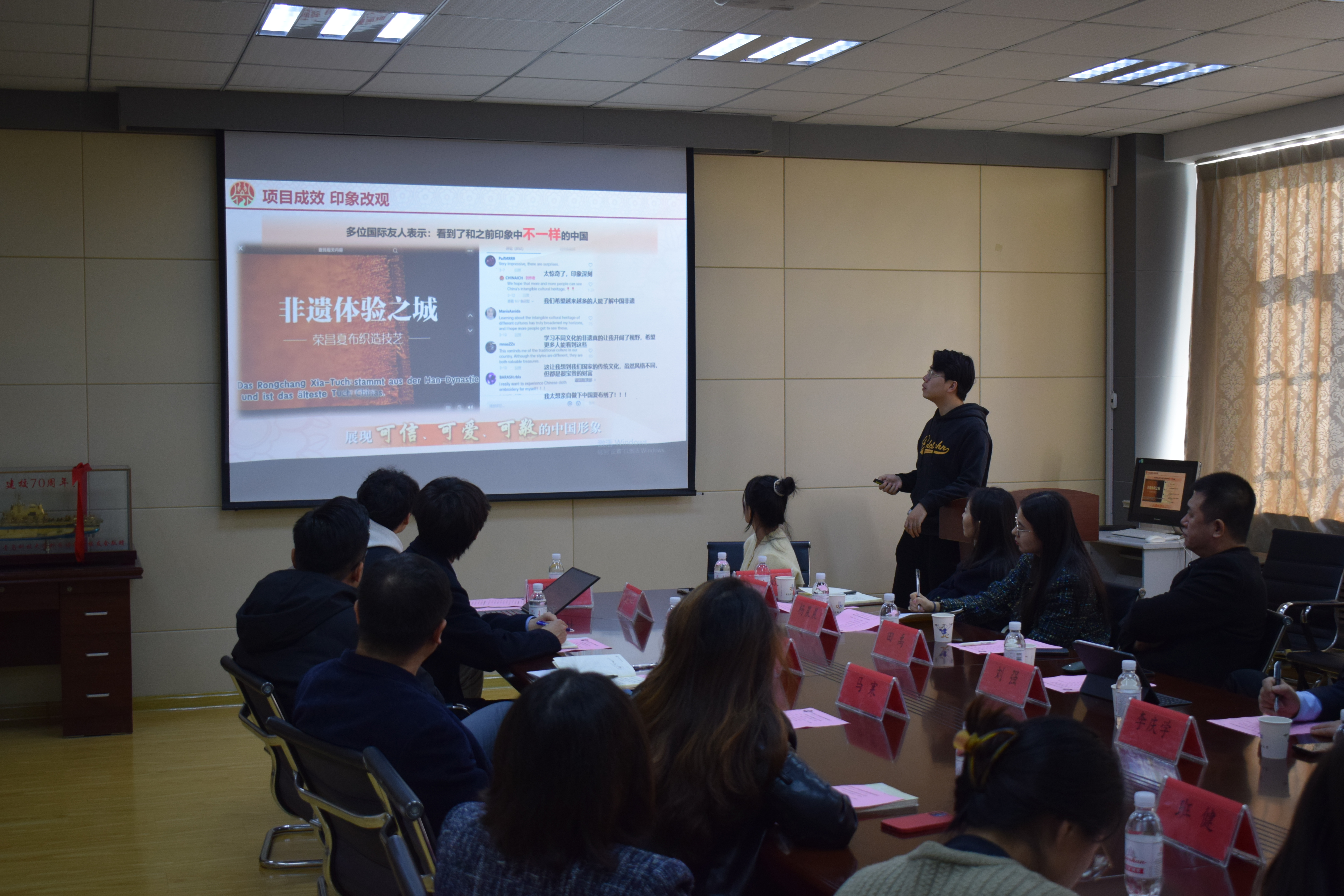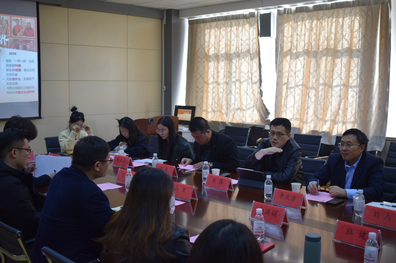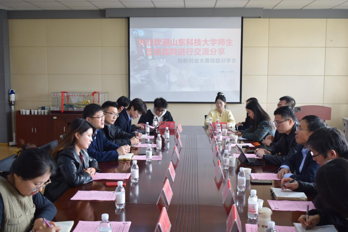 座谈会上,马寒对山东科技大学2026世界杯官网一行的来访表示欢迎,介绍了学院在人才培养、专业设置、学科竞赛、志愿服务活动等情况。赵洪娟和其指导的“非你莫属——一带一路非遗破局者”项目团队就如何打造优秀团队、新文科项目在“挑战杯”赛事中如何凸显优势等问题展开交流分享。