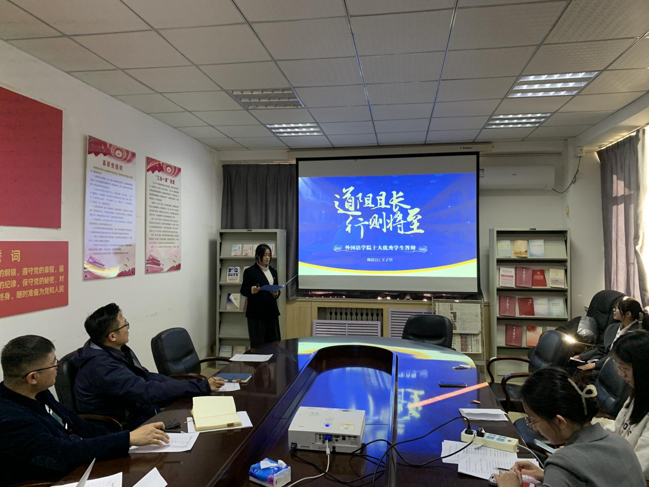 经过广泛宣传、个人申请、资格审核,共有16名候选人参加答辩评选。在答辩评选过程中,候选人以饱满的热情,结合自身经历,从理想信念、学术科研、社会实践、学生工作、志愿服务等方面,生动地介绍了自己的学习成果和成长历程,充分展现了外院学子的独特风采和卓越成绩。