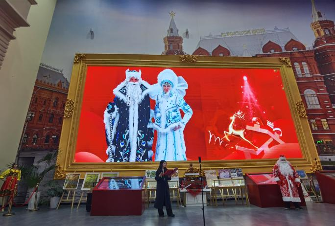新年庆典以喜庆欢快的音乐开场,“严寒老人”和“雪姑娘”在大家的呼唤中出场。“严寒老人”是俄罗斯民间传说中的童话形象,每次在新年期间亮相时,都会带着自己的孙女“雪姑娘”为孩子们送上新年祝福。