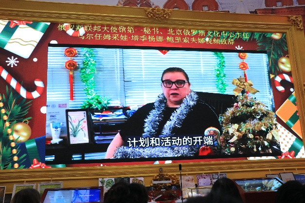 活动伊始,俄罗斯联邦大使馆第一秘书、北京俄罗斯文化中心主任乌尔任姆采娃·塔季扬娜·鲍里索夫娜通过视频为现场观众们送上了新年的祝福。