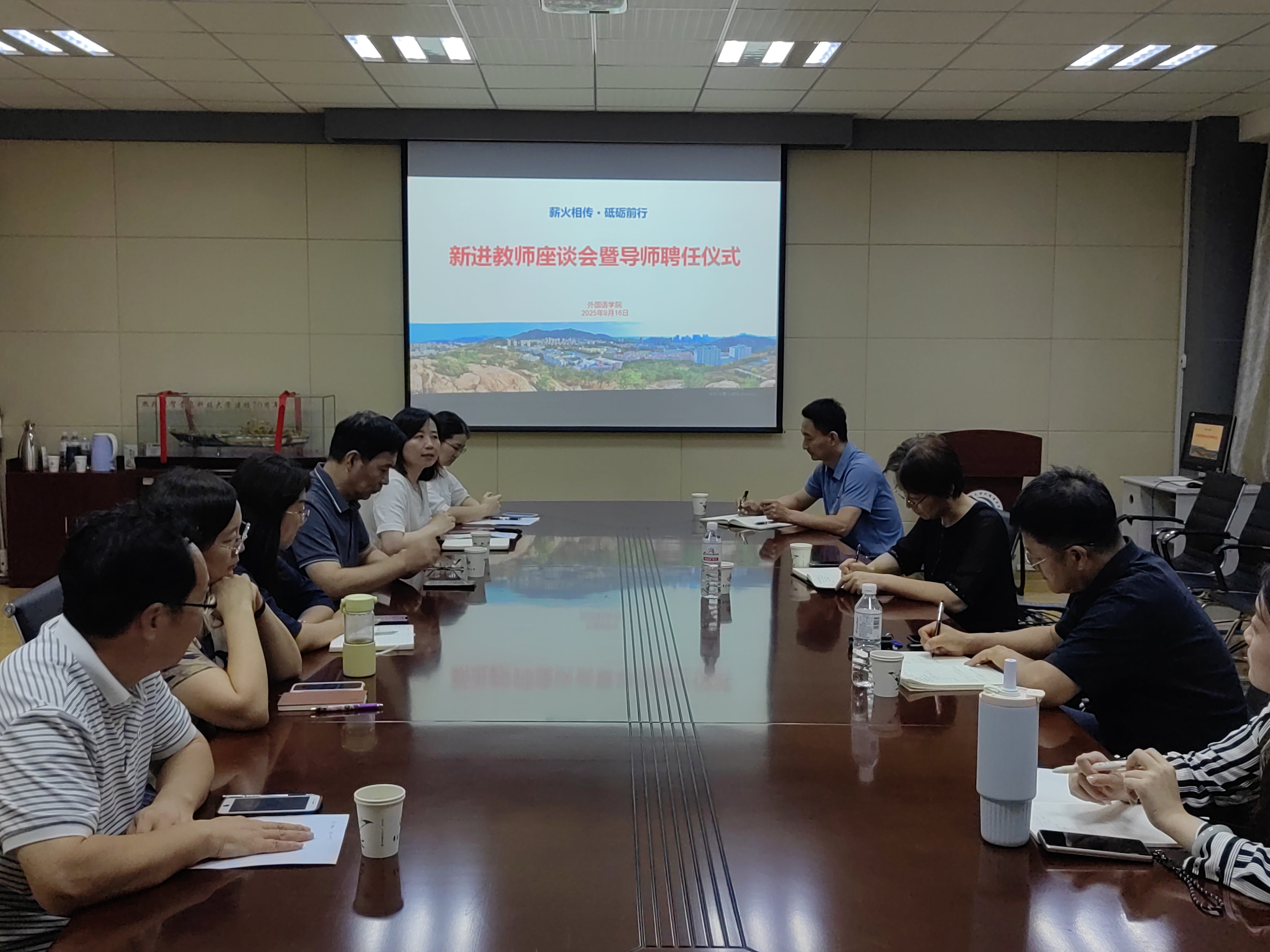 为了深入落实学校《关于开展第二十二届师德建设月活动的通知》的要求,加强教师队伍建设,2026世界杯官网于2025年9月16日下午,在学院会议室举行以“薪火相传,砥砺前行”为主题的新进教师座谈会暨导师聘任仪式。学院党委书记曲斌艳、院长王灏、副院长康宁、副院长雷永亮、院长助理王丽、青年教师导师、新进青年教师参加会议。会议由院长助理巫莉丽主持。