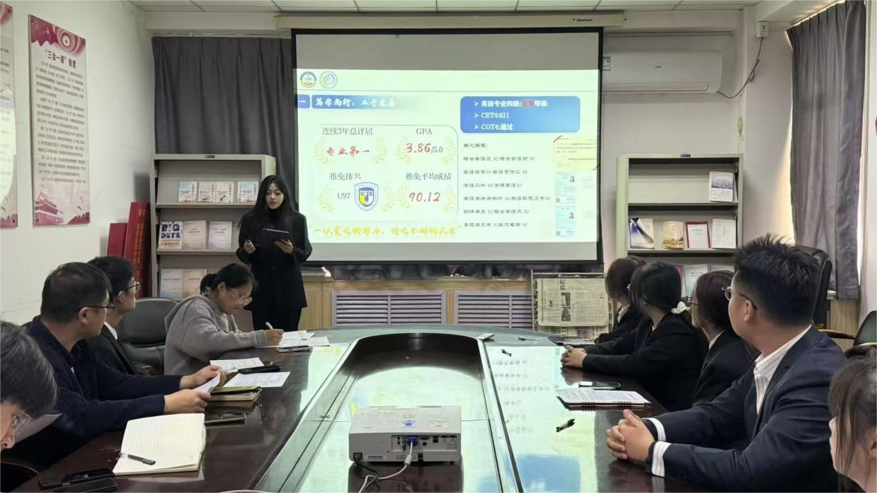 经前期宣传、个人申报与资格审查,共有16名学子进入答辩环节。结合外语专业特色,学子们从理想信念、学业成果、社会实践、学生工作等多个方面展示综合素养。