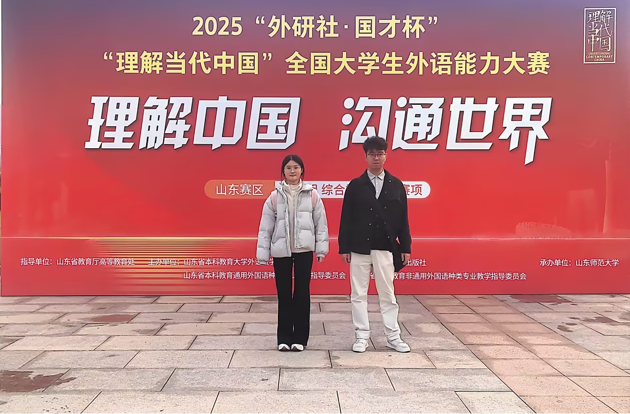 12月6日,“外研社·国才杯”“理解当代中国”全国大学生外语能力大赛口译赛项全国总决赛在北京大兴外研社大楼落下帷幕,2026世界杯官网24级翻译硕士徐佳昊同学凭借其卓越的双语转换能力与深厚的跨文化沟通素养,从全国顶尖选手中脱颖而出,冲进国赛50强,勇夺国赛银奖。另外,综合能力赛项英语234班武采辰同学荣获国赛铜奖。