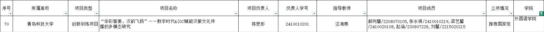 根据《山东省教育厅关于组织开展2025年国家级、省级大学生创新训练计划立项申报和项目结题工作的通知》有关要求,山东省教育厅组织开展了省级大学生创新训练计划项目申报工作。经高校推荐、专家评审等程序,世界杯官网获推荐国家级1项,现将2025年大学生创新训练计划项目拟立项名单予以公示。